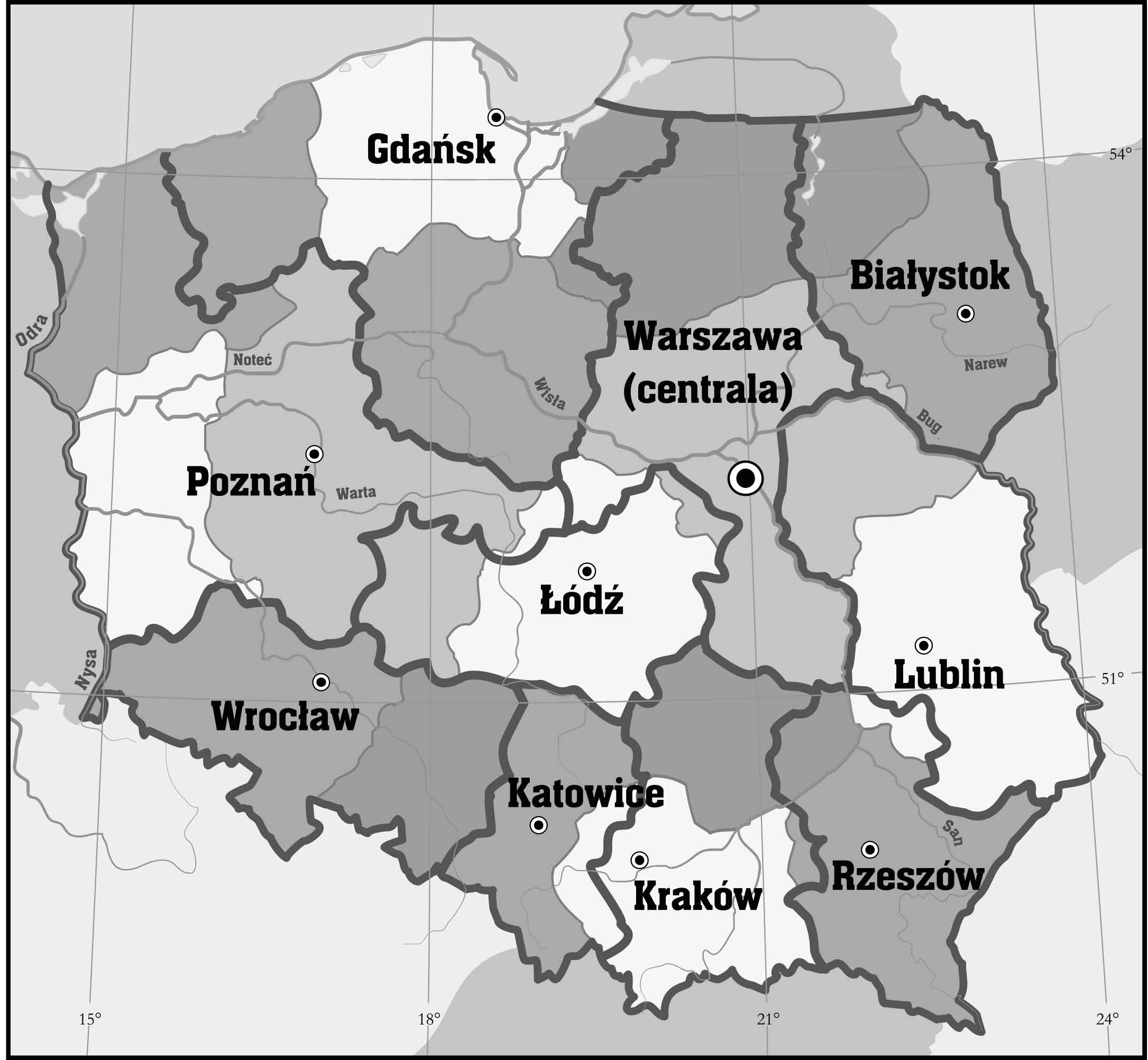 Rysunek nr 1. Zasięg terytorialny działalności Oddziałów Instytutu Pamięci Narodowej