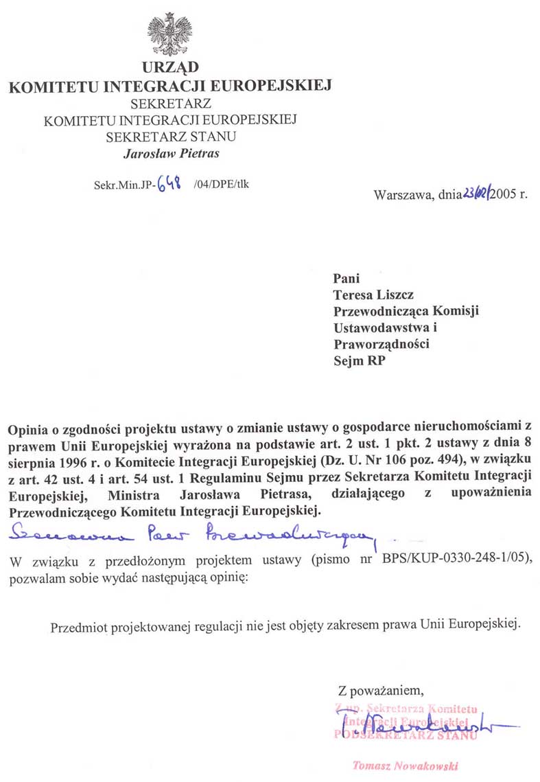 W załączeniu przedstawiamy także informację o zgodności projektu ustawy z prawem Unii Europejskiej.
