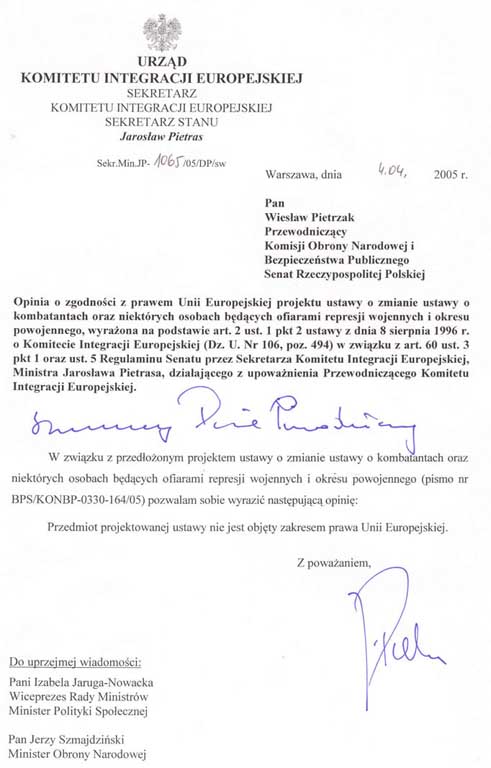 projektu ustawy o zmianie ustawy o kombatantach oraz niektórych osobach będących ofiarami represji wojennych i okresu powojennego.W załączeniu przekazuję projekt ustawy wraz z uzasadnieniem.